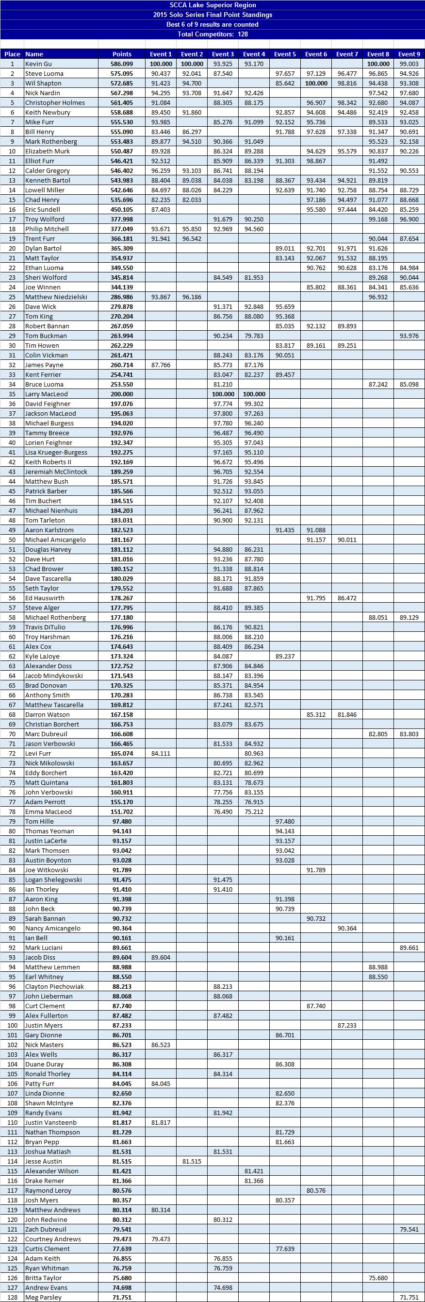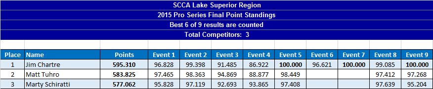 2015 Overall Points 2015 Overall Points (PRO CLASS)