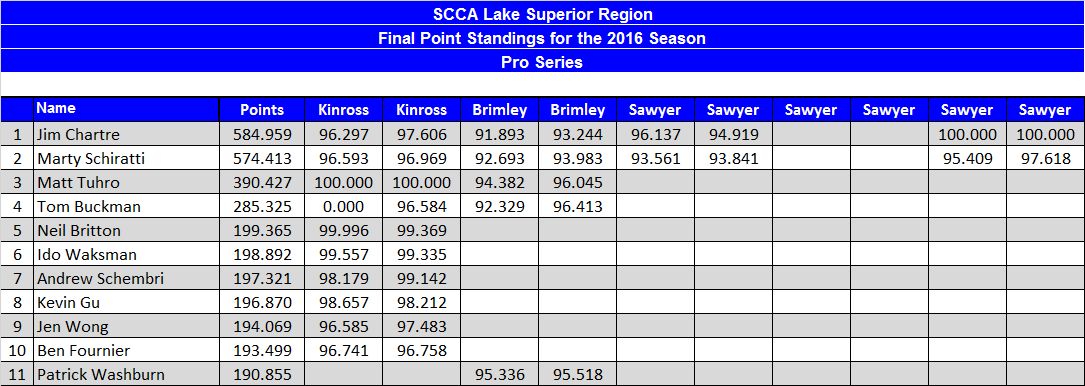 2016 Overall Points 2016 Overall Points (PRO CLASS)